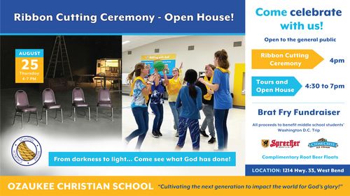 Ozaukee Christian School (OCS) is thrilled to announce after three years of renovations and increased student enrollment, they will open all 22,000 sq.ft. of the former Trenton Business Center for the 2022/23 school year. The board, staff, and families of OCS welcome the community to celebrate with them on Thursday, August 25th, from 4-7pm. The West Bend Chamber of Commerce will be on hand for a Ribbon Cutting Ceremony beginning at 4pm. After the Ribbon Cutting Ceremony, the entire building will be open to self-guided tours allowing attendees to experience the amazing transformation from the previous use to Christian School. The building was formerly owned by California-based strip club Spearmint Rhino.